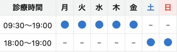 ■当院の開院日時は、Web予約システムのスケジュールに準じます。 Web予約画面にて「予約枠」が表示されている日時が開院時間となります。最新の開院状況は、Web予約ボタンよりご確認ください。