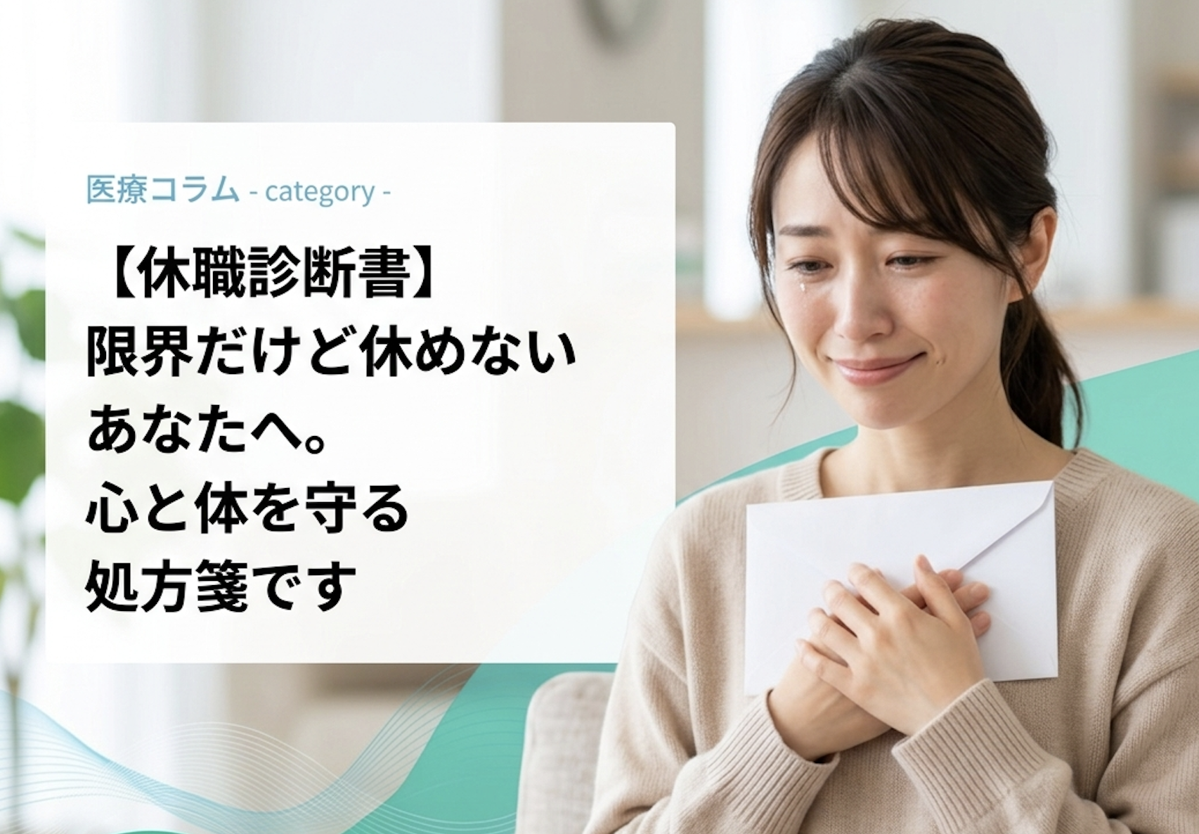 心と体が悲鳴を上げているのに、責任感の強さゆえにギリギリまで頑張りすぎてしまう方は非常に多くいらっしゃいます。 当院では、そうした方々に対して「休職診断書」を発行しています。診断書は、あなたが怠けているわけではなく、医学的な治療と休息が必要であるという「客観的な証明」であり、あなたを過酷な環境から守るための処方箋です。