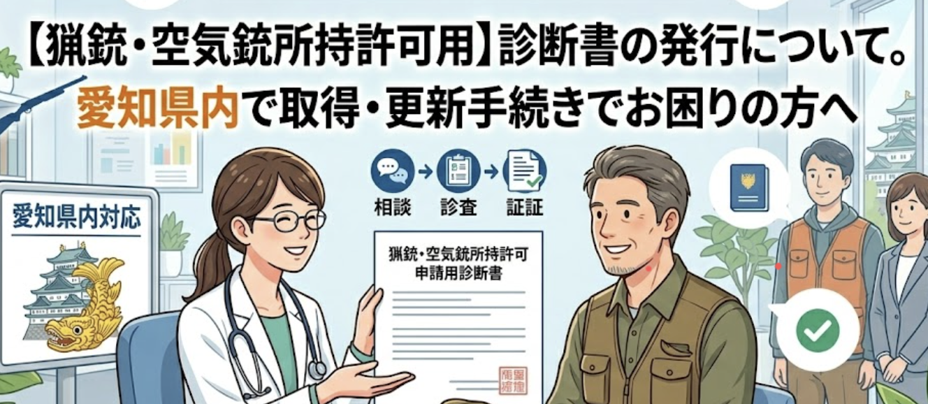 名古屋市千種区の今池メンタルクリニックでは、猟銃等所持許可申請・更新に必要な診断書の発行を行っております。スムーズな手続きのために、当院での発行の流れや注意事項について解説いたします。